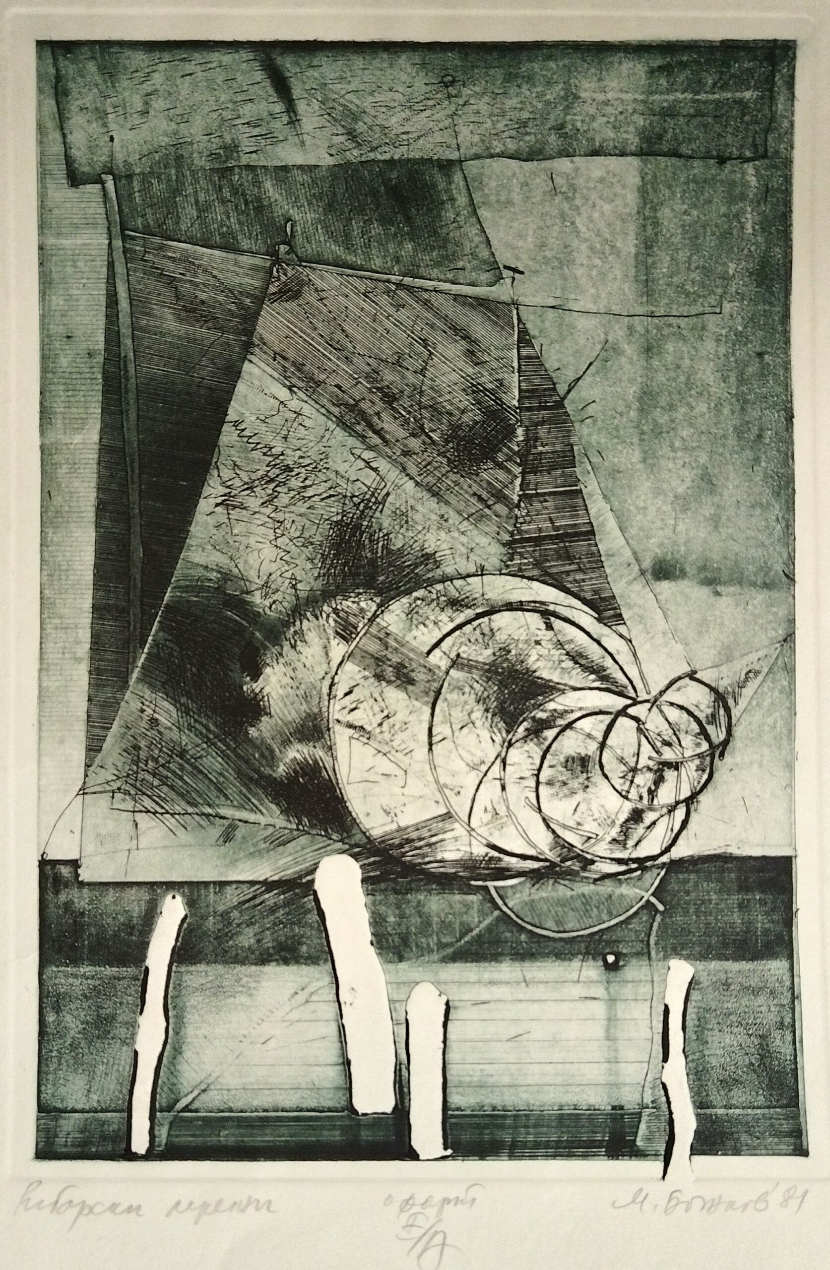 Рибарски мрежи – архив! Наименование: „Рибарски мрежи“ Година: 1981 г. Техника: офорт. Подписана и датирана. Размер на картона: 39,50 х 29,50 см. Размер с рамка, паспарту и антирефлексно стъкло: 63 х 53 см. Категории: Графика, Милко Божков Свързани продукти Графика/Стоимен СтоиловОт цикъла „Хора и животни“ – архив! Още Графика/Христо Керин„Просто джаз“ архив! Още Графика/Юлиан Йорданов1. Артефакт ІІ 260,00 € Добавяне в количката